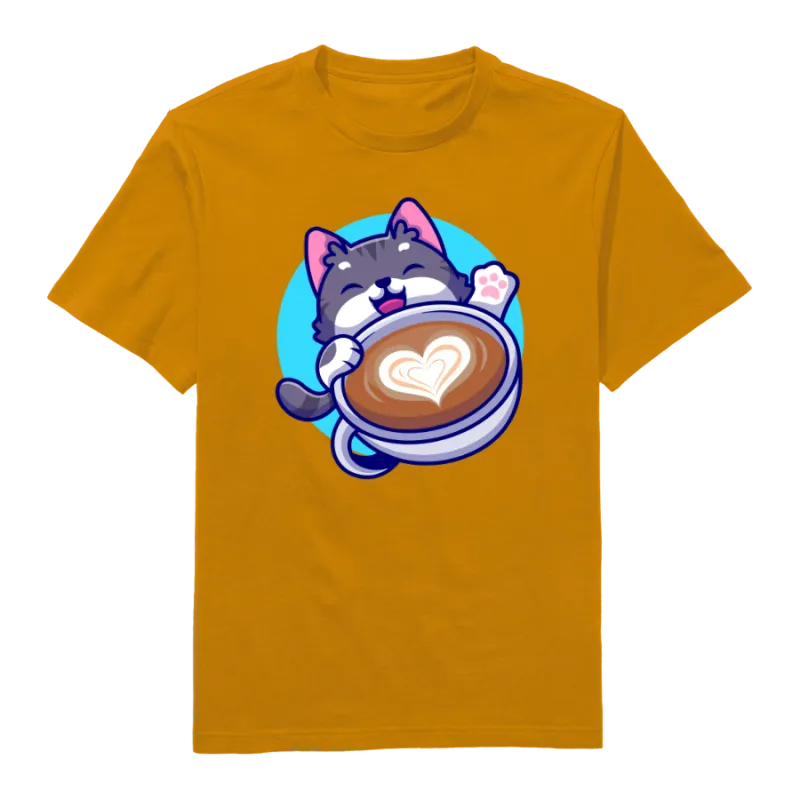 Coffee kitty Round Neck T-Shirt